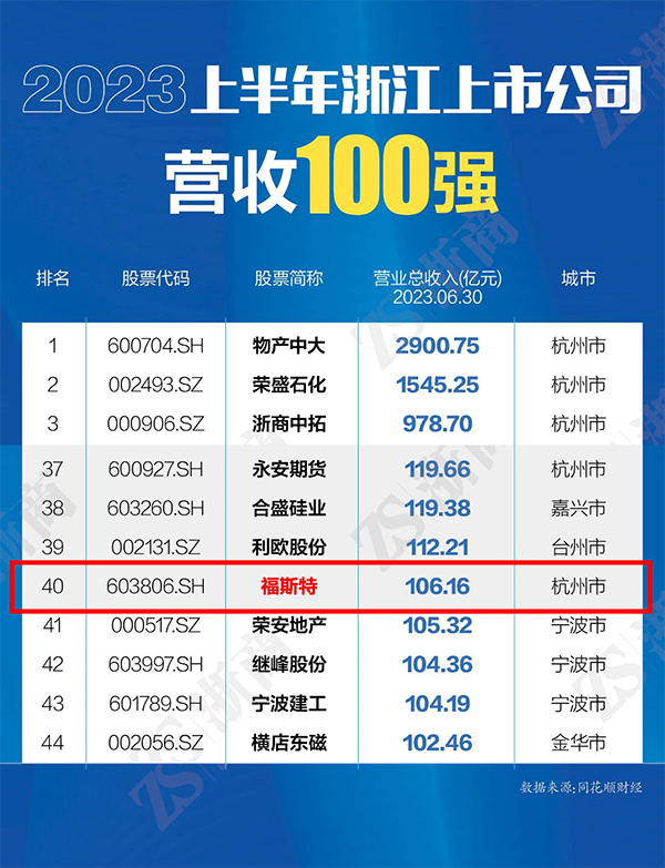 2023上半年度營收超百億,福斯特位列浙江上市公司榜單前40名!
