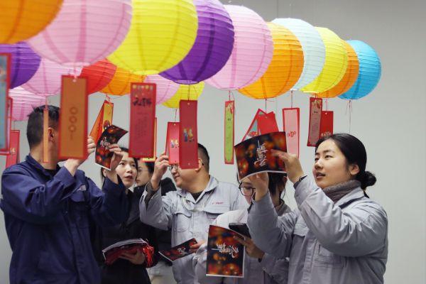 活動現場,喜慶的燈籠烘托出濃濃的節日氛圍,一條條趣味燈謎掛滿室內,既有通俗易懂的猜字謎,也有較為靈活的腦筋急轉彎。職工們仔細打量著謎面,邊思考解謎、邊互相討論,現場歡笑聲不斷。